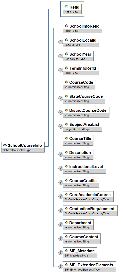 | SchoolCourseInfoRefId | O | Low | The GUID of the SchoolCourseInfo object. | RefIdType | |