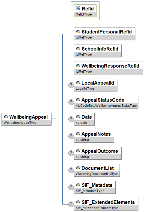@![]() | RefId | M | Low | The ID (GUID) assigned to uniquely identify this WellbeingAppeal. | RefIdType |