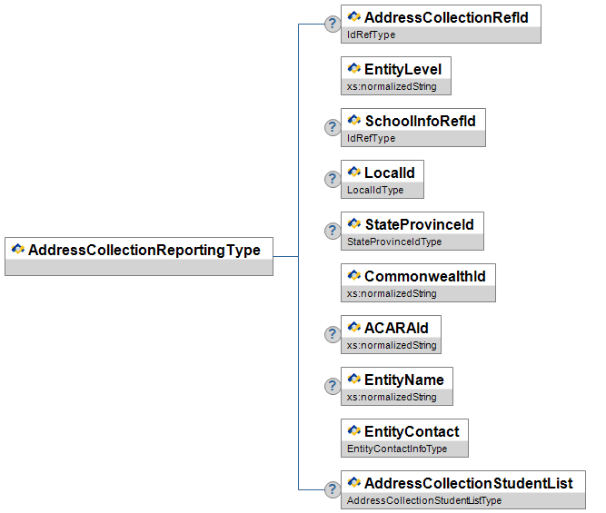 | AddressCollectionStudentList | O | A list of Students being reported on for this Address Collection. | AddressCollectionStudentListType |