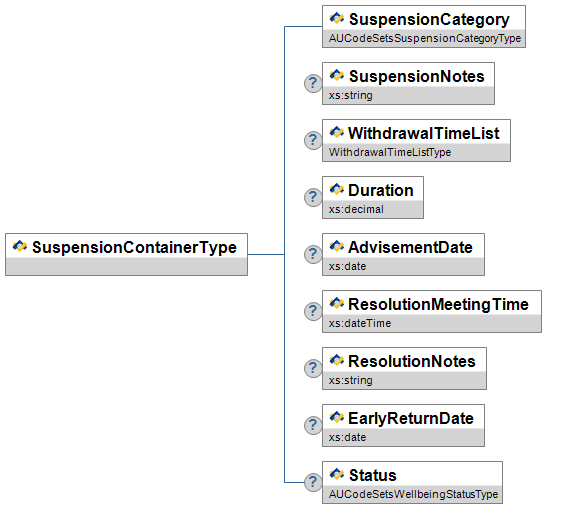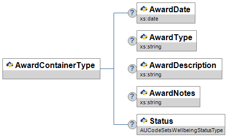 | WellbeingEventSubCategory | MR | union of: AUCodeSetsEventSubCategoryType xs:string |