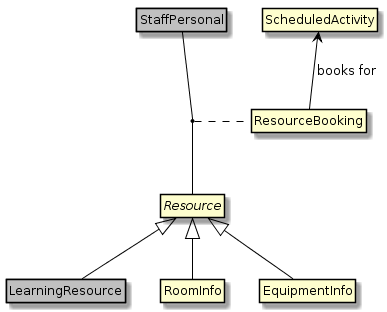| EquipmentInfo | Low | This object represents any resource object that is not already described in SIF AU by an existing object (such as RoomInfo or LearningResource). It is intended for use with ResourceBooking, so it can represent any bookable resource; but it is not limited to that usage. While the obvious type of equipment described for booking purposes are things like computers and projectors, the types of equipment that can be booked depends on the educational organisation, and can easily extend to things like vehicles or animals. | |||