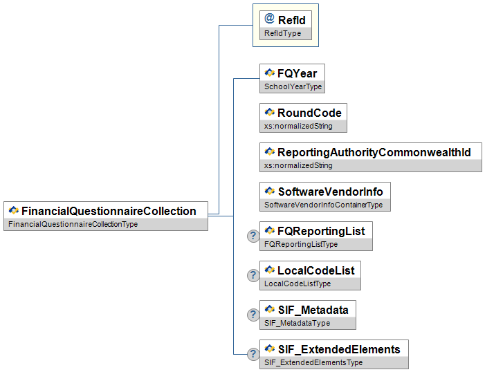 | FinancialQuestionnaireCollection | High | Object for Australian Government collection submission collecting financial information from schools and school authorities. | |||