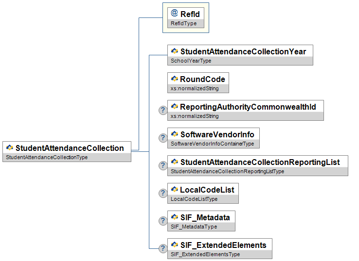 Figure 3.5.6-1: StudentAttendanceCollection| Element/@Attribute | Char | Privacy Rating | Description | Type | |