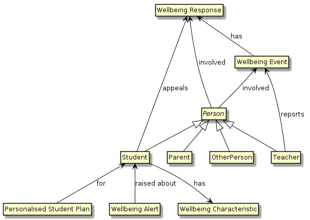 | A Student is involved in a Wellbeing Response | StudentPersonal, WellbeingResponse |