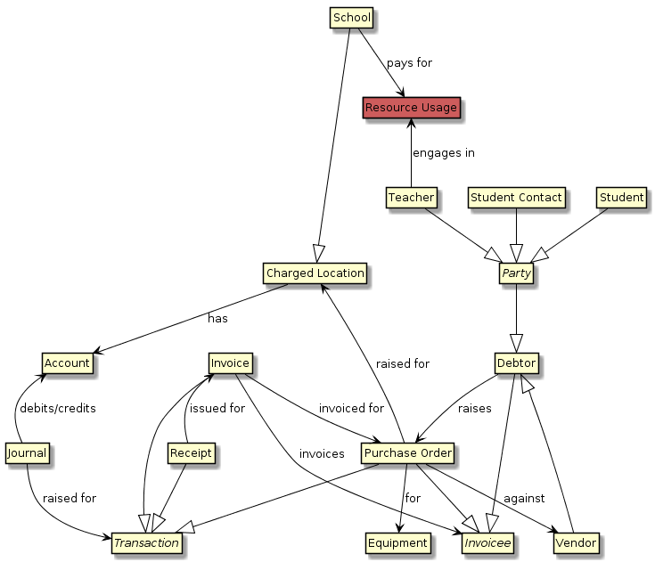 | A School pays for Resource Usage | SchoolInfo, ResourceUsage |
