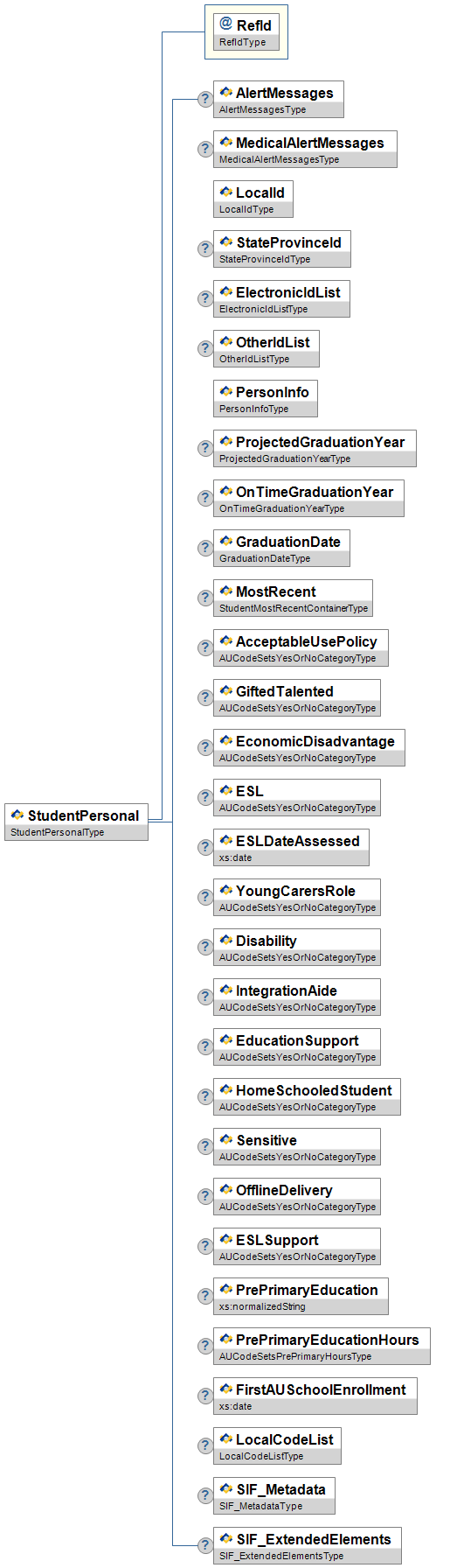 | StudentPersonal | Extreme | This object contains all the personal information related to the student. | |||