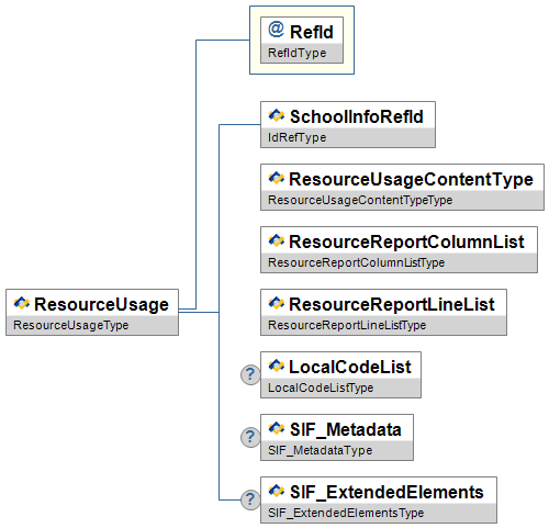 | ResourceUsageContentType | M | Low | Information about the ResourceUsage. | ResourceUsageContentTypeType | |