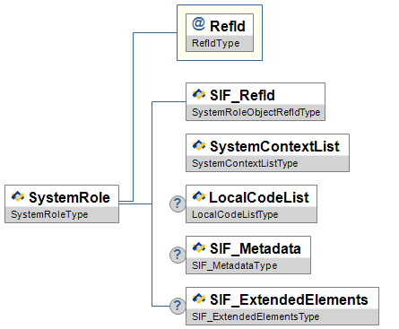 | SIF_RefId | M | Low | The SIF RefId that provides the source Object for this SystemRole Object. | SystemRoleObjectRefIdType | |