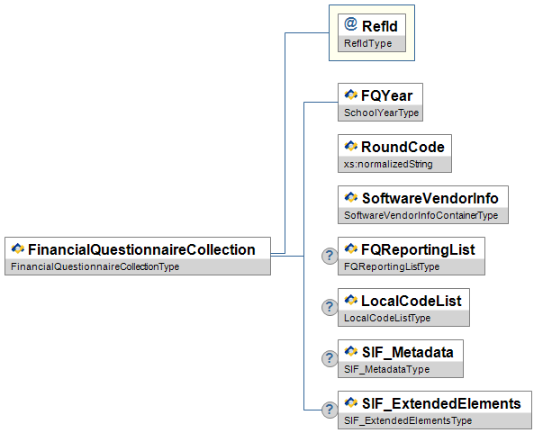 | FinancialQuestionnaireCollection | High | Object for Australian Government collection submission collecting financial information from schools and school authorities. | |||