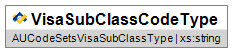 | VisaSubClassCodeType | O | Visa Sub-Class - Can be free text - not necessary to validate | union of: AUCodeSetsVisaSubClassType xs:string |