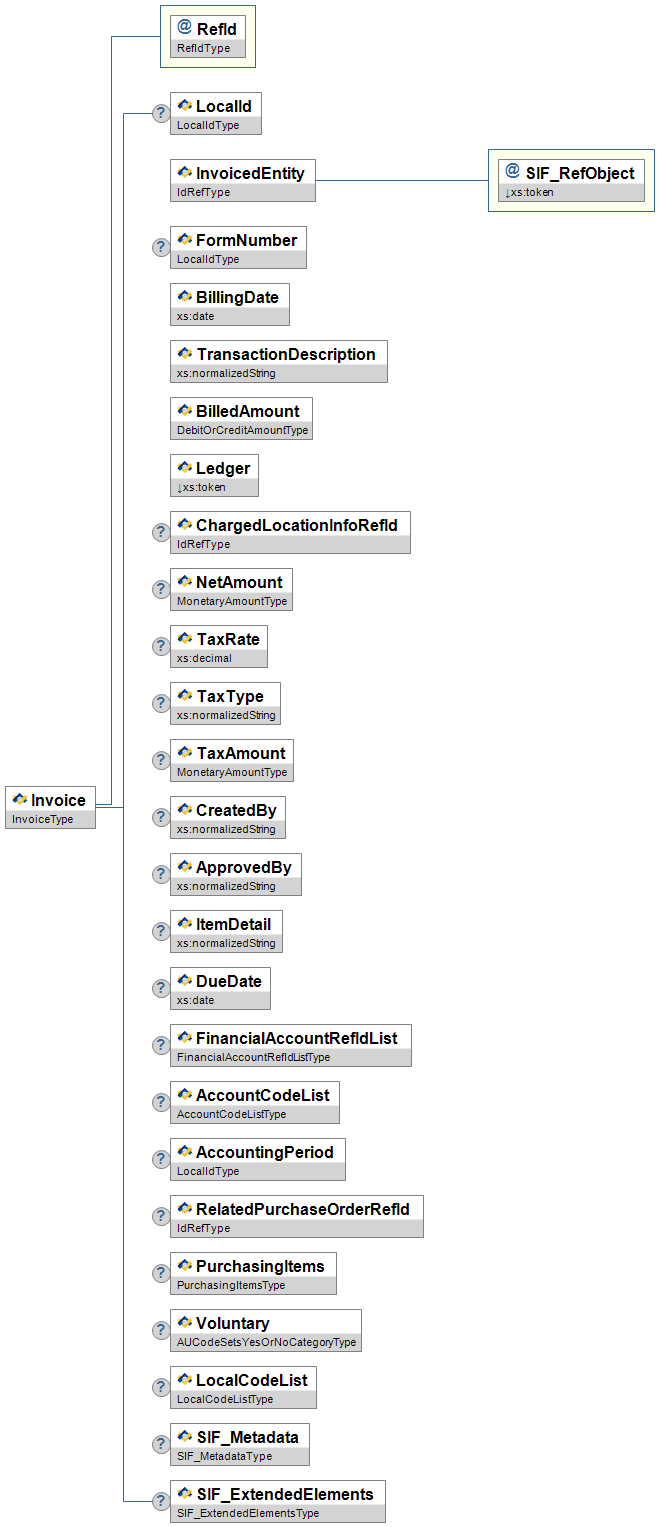 | @ | SIF_RefObject | M | High | RefId of SIF object referenced by Invoiced Entity. | values: