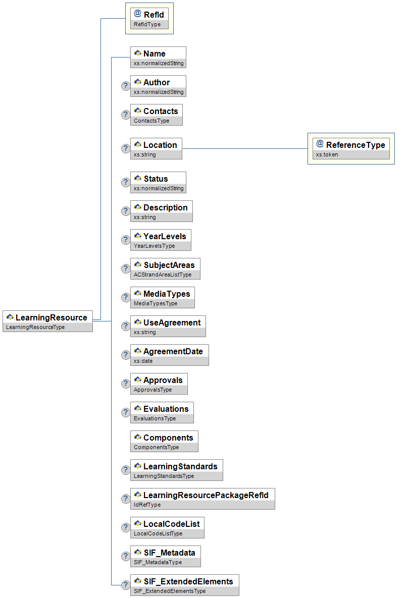 | LearningResourcePackage | Low | A wrapper for any external learning content to be transmitted across a SIF Zone. | AbstractContentElementType |