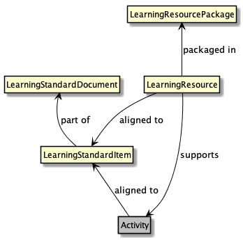 | LearningStandardDocument | Low | A curriculum standards document or the like published by a national, state, district, school site, professional association or other interested party. The LearningStandardDocument reflects an expectation of student work. | |||