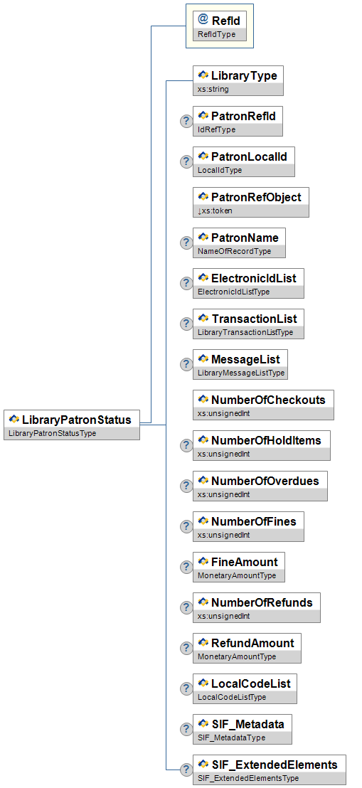 Figure 3.11.2-1: LibraryPatronStatus| Element/@Attribute | Char | Privacy Rating | Description | Type | |