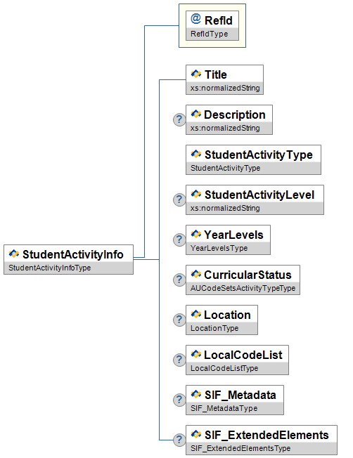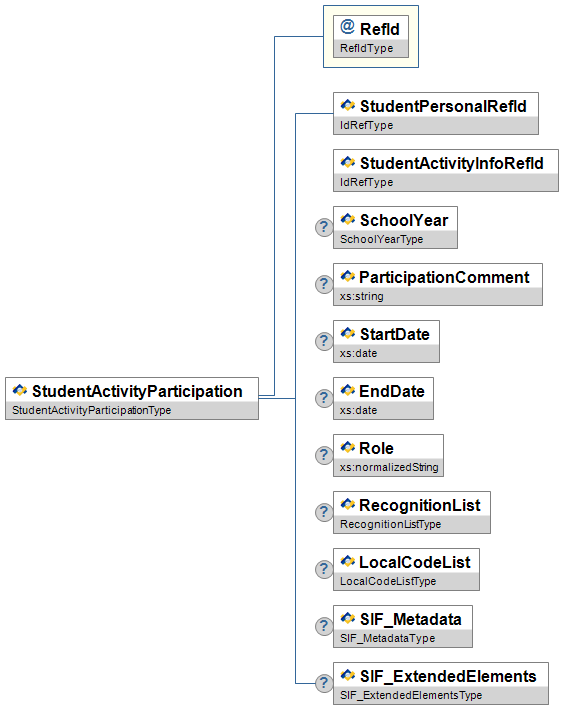 | StudentActivityInfoRefId | M | Low | GUID that identifies the activity in which the student participates. | IdRefType | |