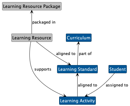 | A Learning Resource is aligned to a Learning Standard | LearningResource, LearningStandardItem |