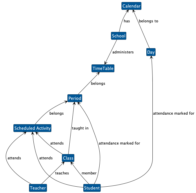 | A School has a Calendar | SchoolInfo, CalendarSummary |