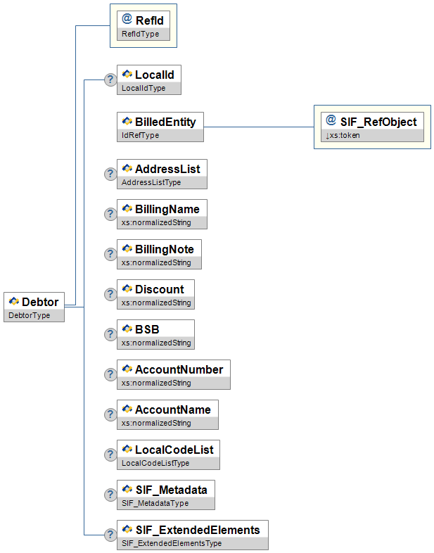 | @ | SIF_RefObject | M | High | SIF object referenced by BilledEntity. | values: