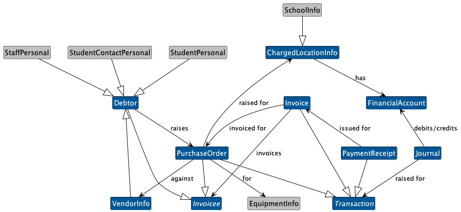 | ChargedLocationInfo | Low | ChargedLocationInfo represents a location in a school system. It can be used to associate accounts and purchase orders with particular schools or other cost centres. | |||