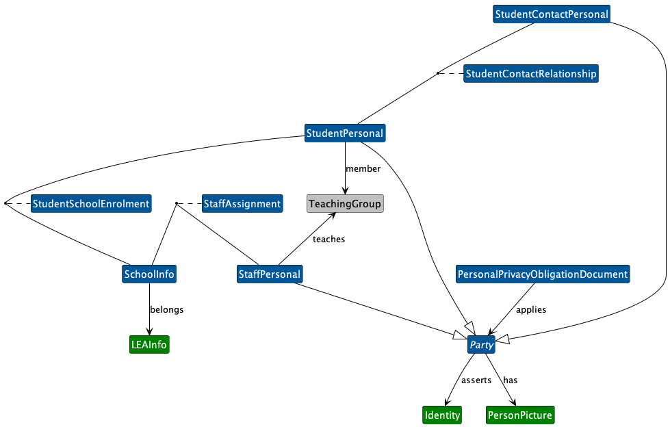 This represents the objects in the original SBP, SchoolInfo, StudentPersonal, StudentSchoolEnrollment, StudentContactRelationship, StudentContactPersonal and TeachingGroup. Other Objects included in this group as supporting objects.