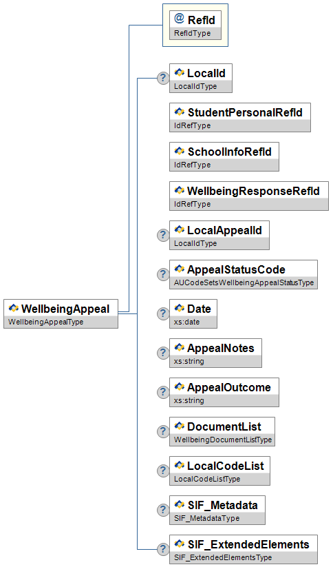 @![]() | RefId | M | Low | The ID (GUID) assigned to uniquely identify this WellbeingAppeal. | RefIdType |