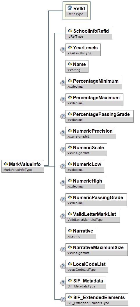 | YearLevels | O | Low | The year levels that this MarkValueInfo applies to. | YearLevelsType | |