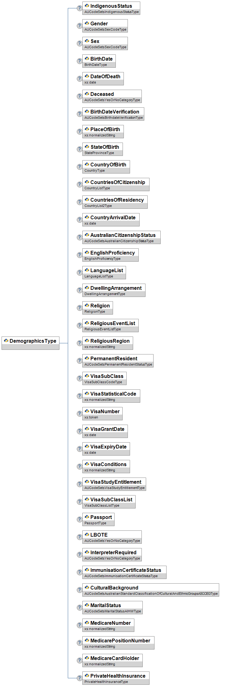 | VisaSubClassCodeType | O | Visa Sub-Class - Can be free text - not necessary to validate | union of: AUCodeSetsVisaSubClassType xs:string |