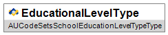 | EducationLevel | M | Primary or Secondary for AG Collection reporting. | AUCodeSetsEducationLevelType | |