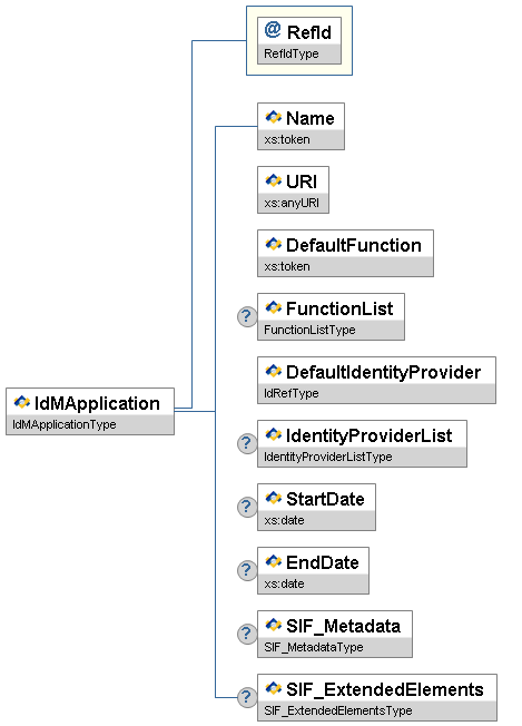 Figure 3.9.1-1: IdMApplication| Element/@Attribute | Char | CEDS Id/URL | Description | Type | |