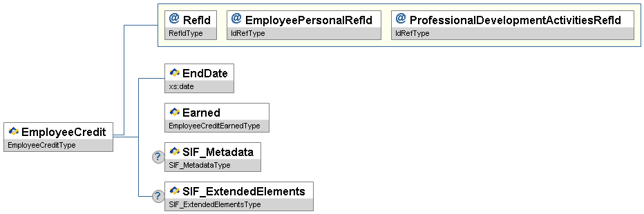 Figure 3.14.3-1: EmployeeCredit| Element/@Attribute | Char | CEDS Id/URL | Description | Type | |