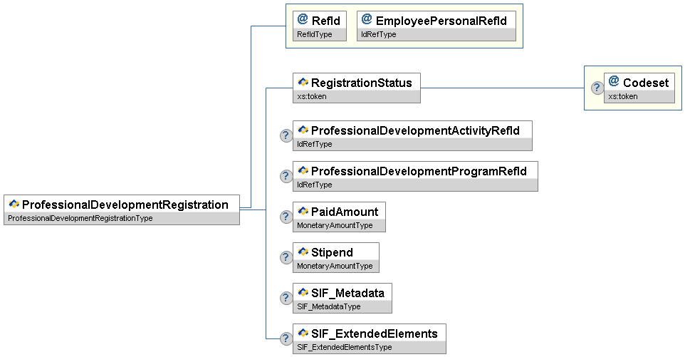 | ProfessionalDevelopmentProgramRefId | O | Reference to associated professional development program. | IdRefType | ||