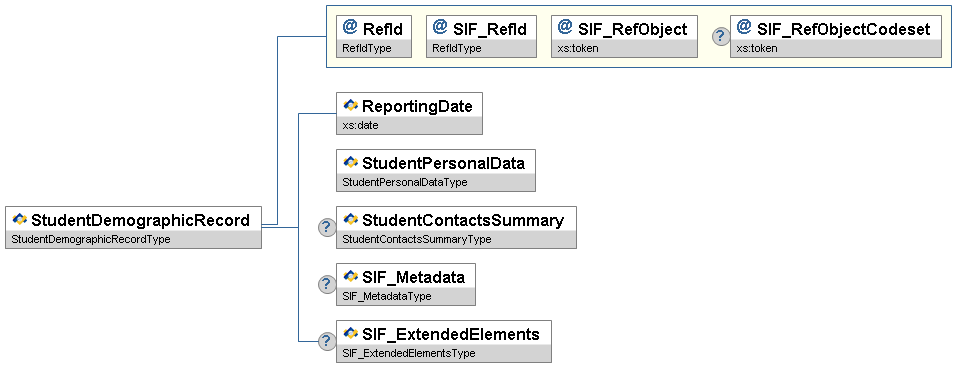 Figure 3.17.2-1: StudentDemographicRecord| Element/@Attribute | Char | CEDS Id/URL | Description | Type | |