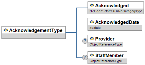 | AcknowledgementListType | A list of the providers and staff who have been sent the alerts and have acknowledged they have been read. | List | ||