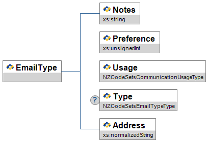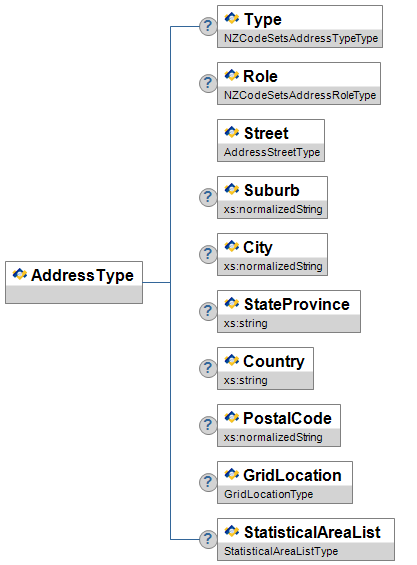 | Type | O | Code defining the class of the address: Urban, Rural, Delivery Service or Foreign. | NZCodeSetsAddressTypeType | |