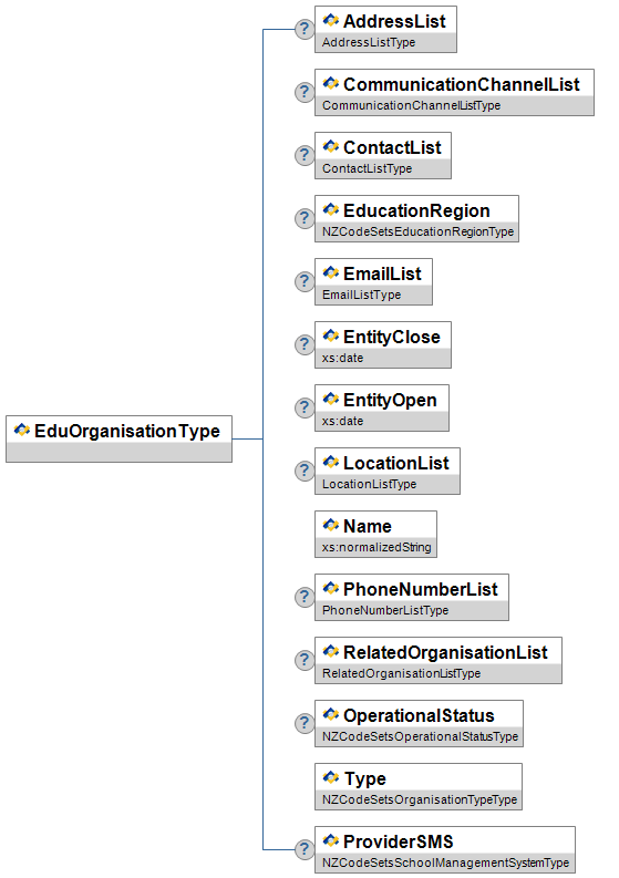 | Type | M | Code denoting the kind of Tertiary service. eg: University, Wananga, etc. | xs:string |