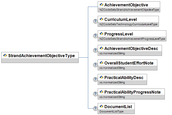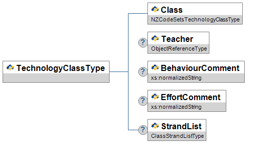 | TechnologyClassListType | A list of records of the Student's progress in particular classes from the Technology curriculum. e.g. Hard Materials, Food Technology, Digital Design etc. | List | ||