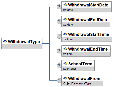 | WithdrawalFrom | O | Generic reference to the TeachingGroup, StudentActivity, or TimeTableSubject that the learner is withdrawn from. | ObjectReferenceType |