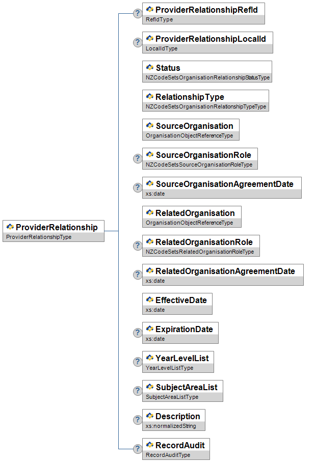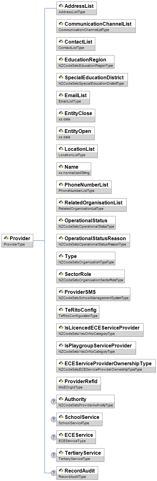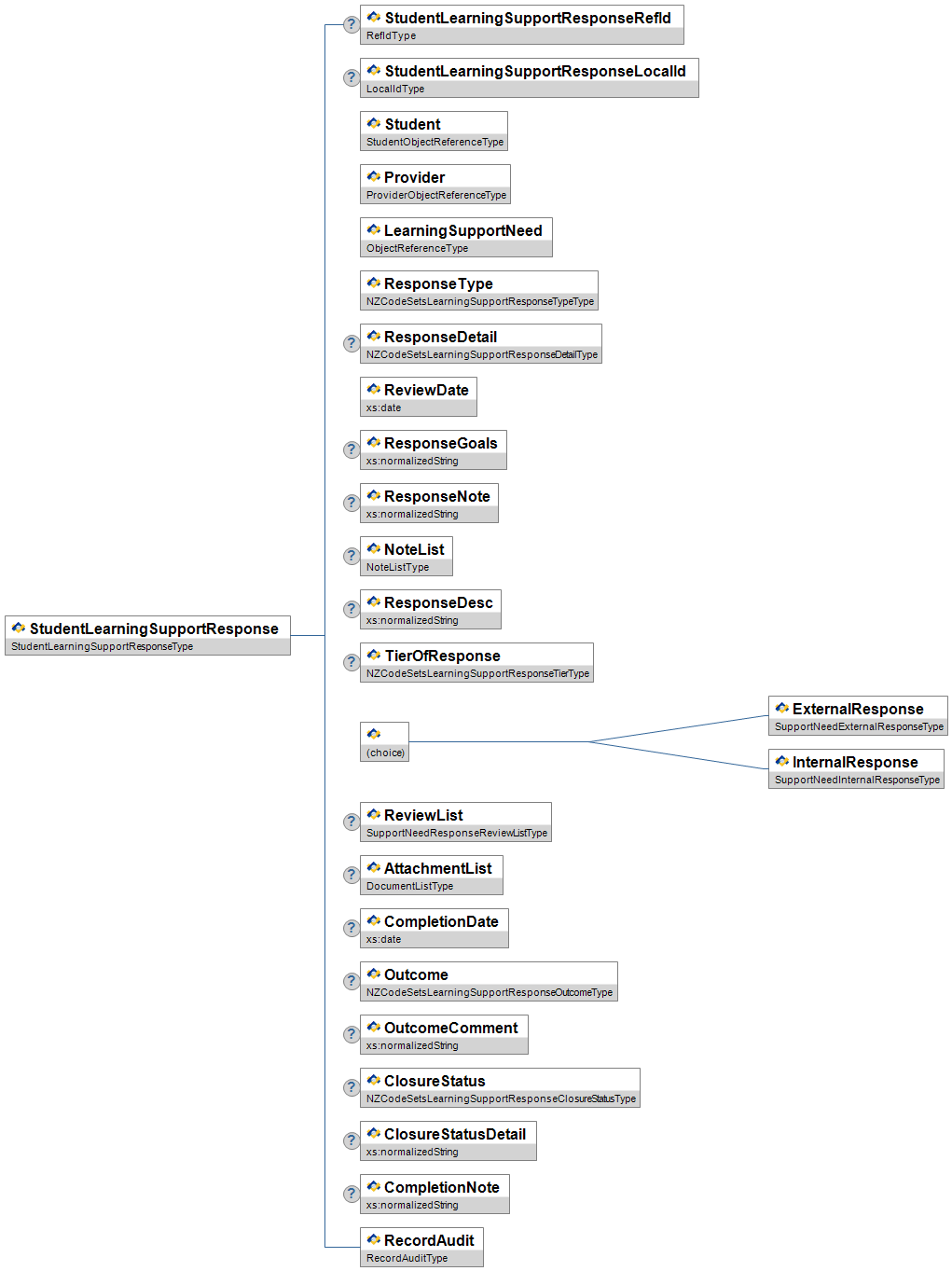 | CaseLead | O | Low | The Agency taking the lead on the learning support need case, e.g. MOE, Police, Corrections etc.) | NZCodeSetsLearningSupportCaseLeadType | |