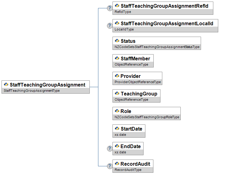 | TeachingGroup | O | Low | Generic object reference to the TeachingGroup object in which this assignment has been set. | ObjectReferenceType | |||||