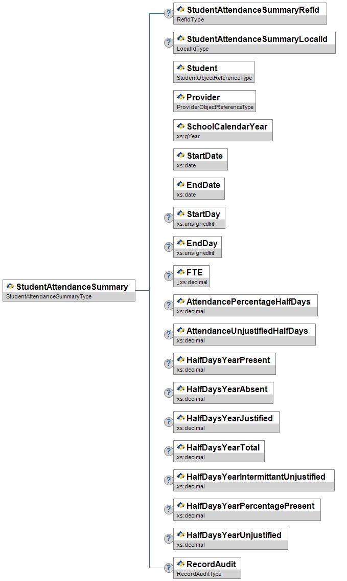StudentAttendanceSummary from SIF AUInformation about an academic department within a provider, e.g. Maths Department.