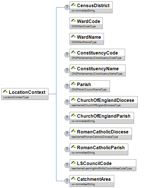 | LSCouncilCode | O | Learning and Skills Council area code | teachernetLearningAndSkillsCouncilAreaCodeType | |