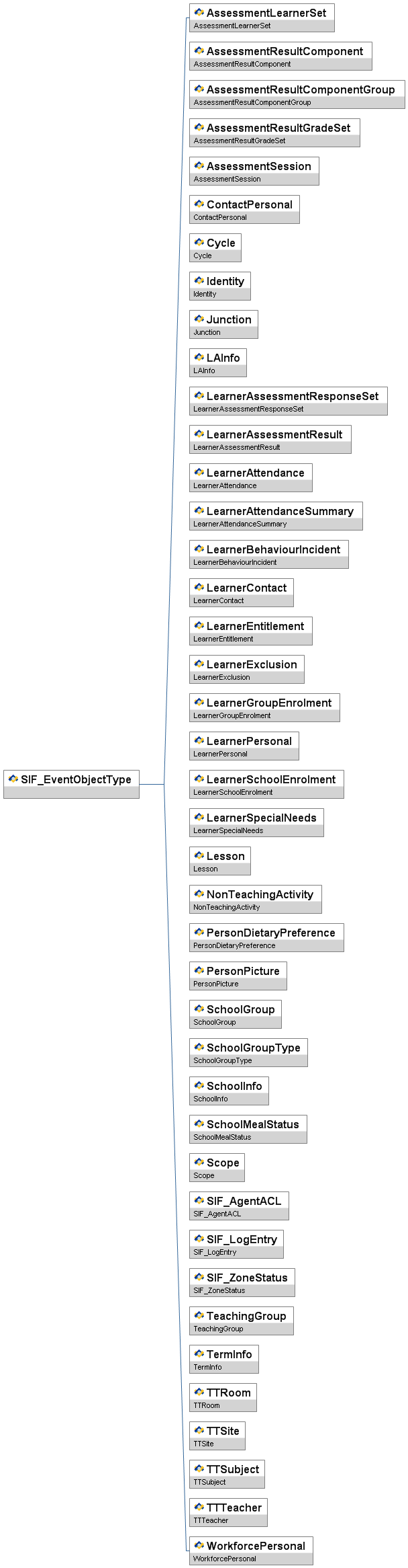 SIF_Event message.Figure A.12-1: SIF_EventObjectTypeTable A.12-1: SIF_EventObjectTypeSIF_Query/SIF_Example.Figure A.13-1: SIF_ExampleObjectType| Element/@Attribute | Char | Description | Type | |