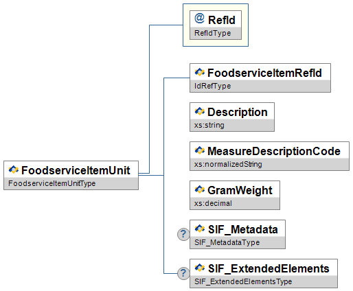 Figure 3.6.4-1: FoodserviceItemUnit| Element/@Attribute | Char | Description | Type | |