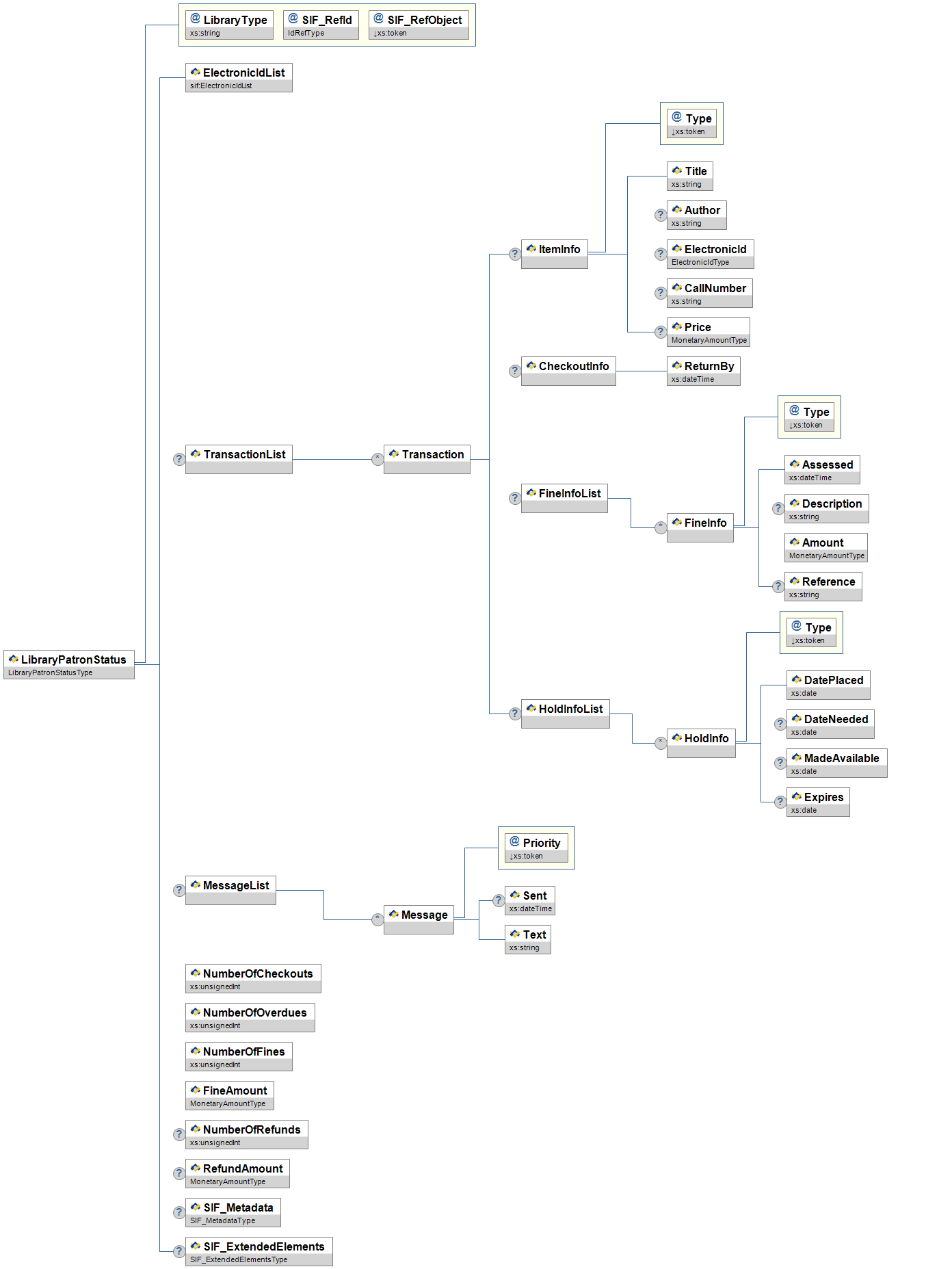 Figure 3.11.1-1: LibraryPatronStatus| Element/@Attribute | Char | Description | Type | |