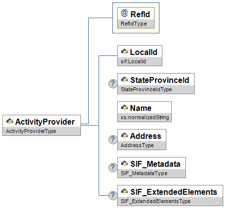 | @ | ActivityProviderRefId | M | References the ActivityProvider object | IdRefType |