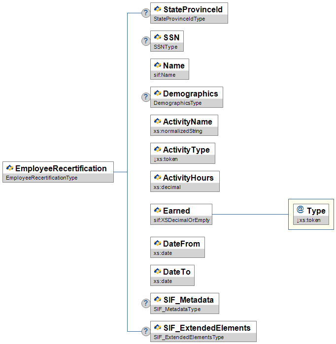 Figure 3.12.4-1: EmployeeRecertification| Element/@Attribute | Char | Description | Type | |