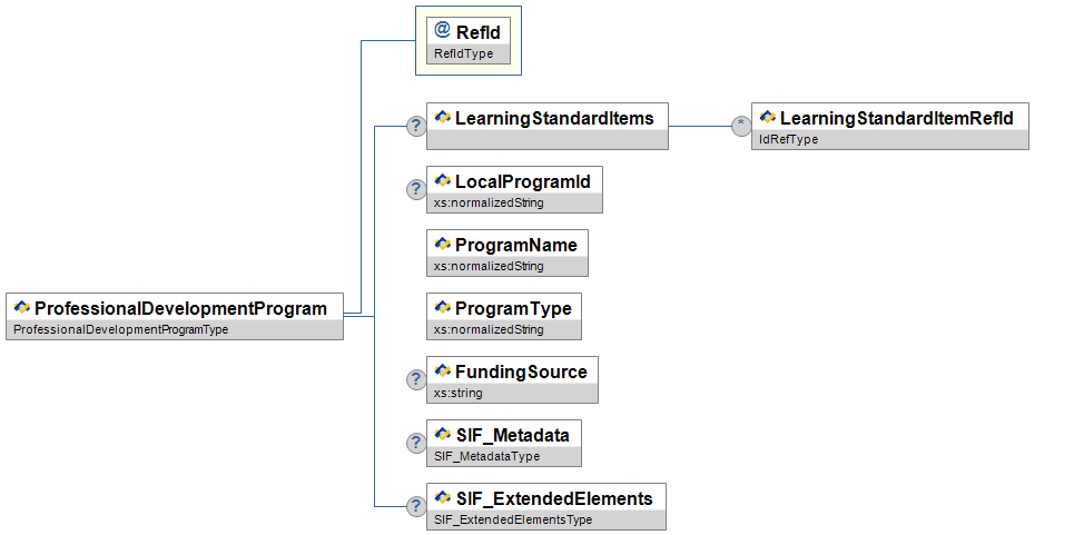| ProfessionalDevelopmentProgramRefId | O | Reference to associated professional development program. | IdRefType | |