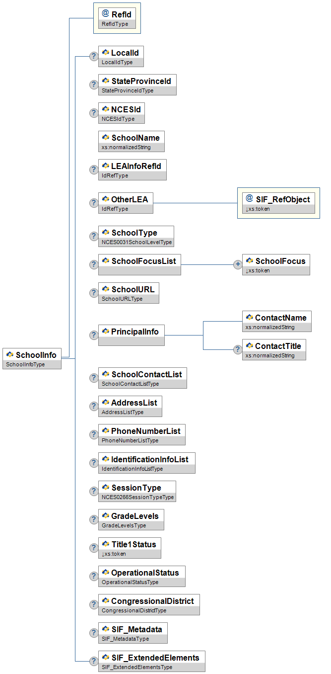 | @ | SchoolInfoRefId | M | The Id (GUID) that identifies the school where the term is used. | IdRefType | ||||||