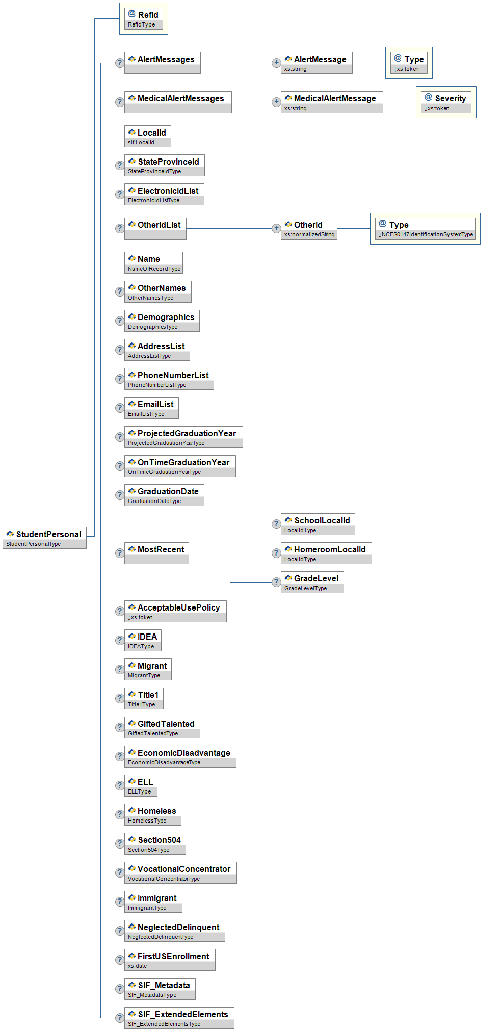 @![]() | StudentPersonalRefId | M | The Id (GUID) of the student to whom this information relates. | IdRefType |