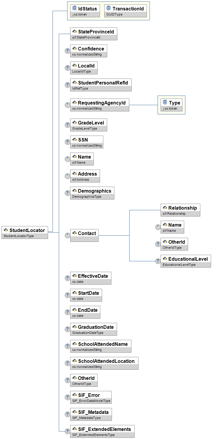 StudentLocator has been upgraded to a set of SIF Zone Services. It is anticipated that the StudentLocator object will be removed from the next major version of this specification.